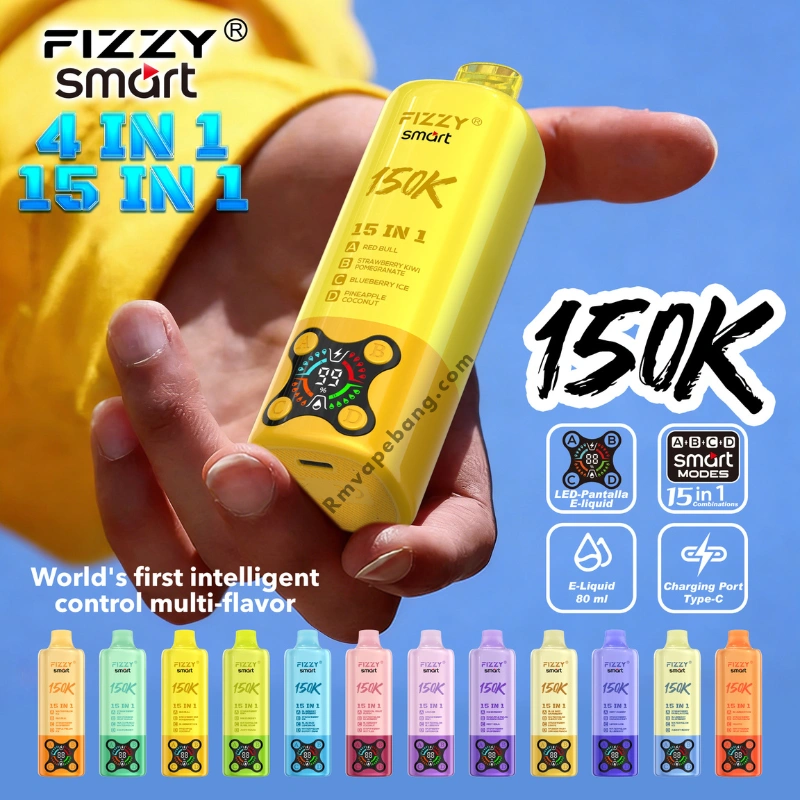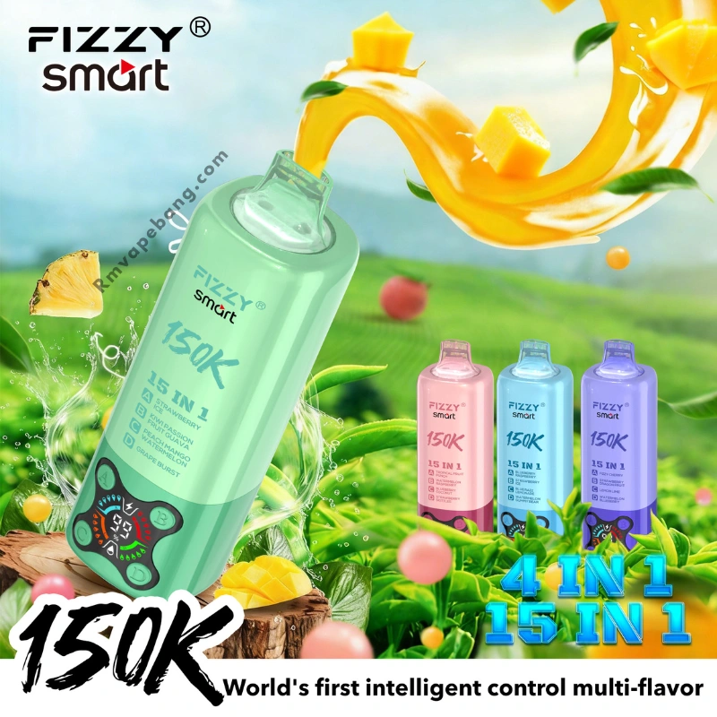 FIZZY Smart 150K vienreizējā vape ar daudzveidīgu aromātu pārslēgšanu, LED displeja kontroli un augstas ietilpības veiktspēju. Izstrādāta pieaugušo lietotājiem, kuri dod priekšroku ļoti ilgi darbojošiem gudriem vienreizējiem vape ierīcēm ar stabilu izvadi un mūsdienīgu dizainu.