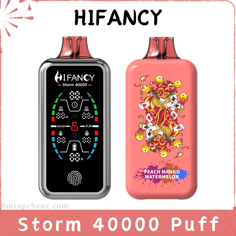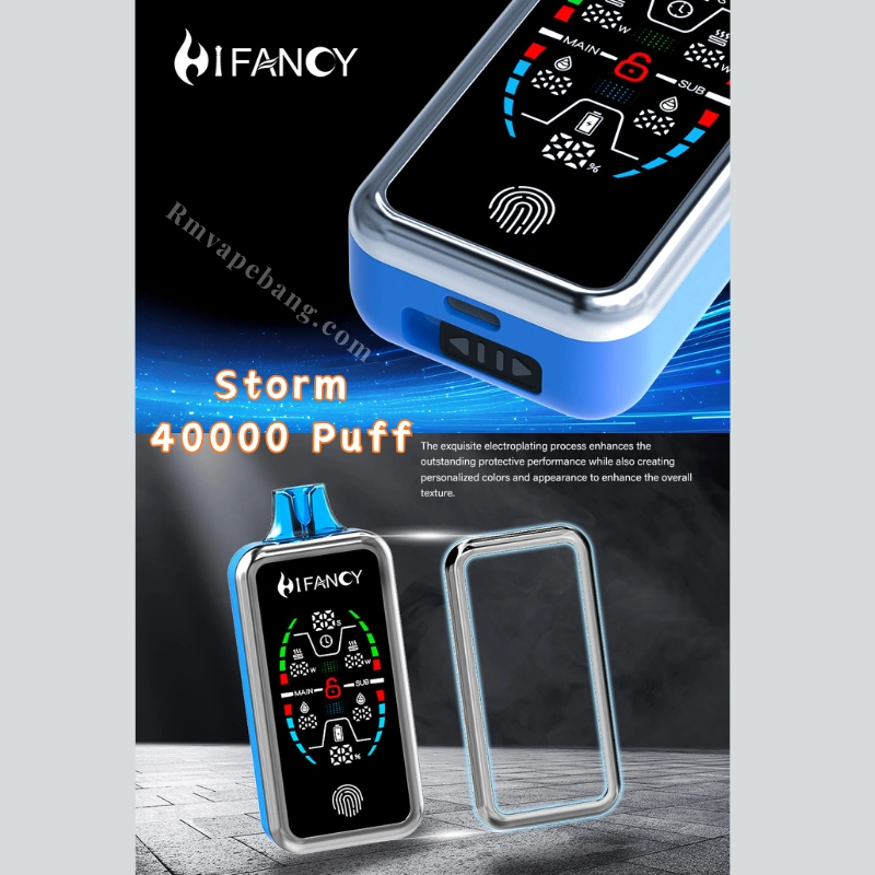 HIFANCY Storm 40K Rechargeable Disposable Vape is a high puff disposable vape built for long lasting performance and smooth dual flavor output. Designed with a full display screen touch switch, adjustable ice level and double oil silos. Vape of HIFANCY Storm 40000 Puffs delivers a modern smart display vape device experience.